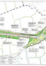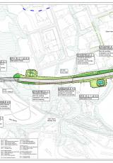 Cynlluniau'n dangos nodweddion amgylcheddol y prosiect, gan gynnwys plannu a draenio.