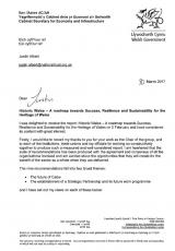 Cymru Hanesyddol - Ar drywydd Llwyddiant, Cadernid a Chynaliadwyedd ar gyfer Treftadaeth Cymru - Cabinet dros yr Economi a'r Seilwaith - llythyr , Saesneg yn unig, math o ffeil: PDF, maint ffeil: 83 KB