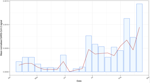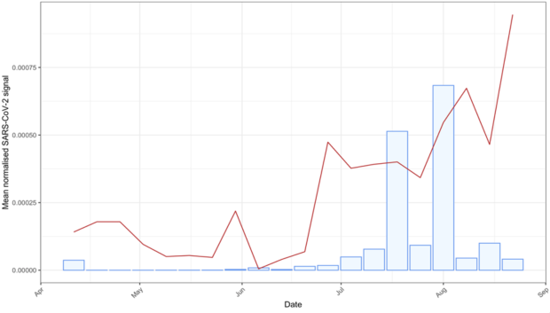 Wastewater signal is a relatively unbiased indicator because it is not dependent on testing policy and behaviour. The characteristics of the individual sewerage systems could have an impact on the signal being seen. Subsequently, the relationship between cases and wastewater signal is still being investigated.