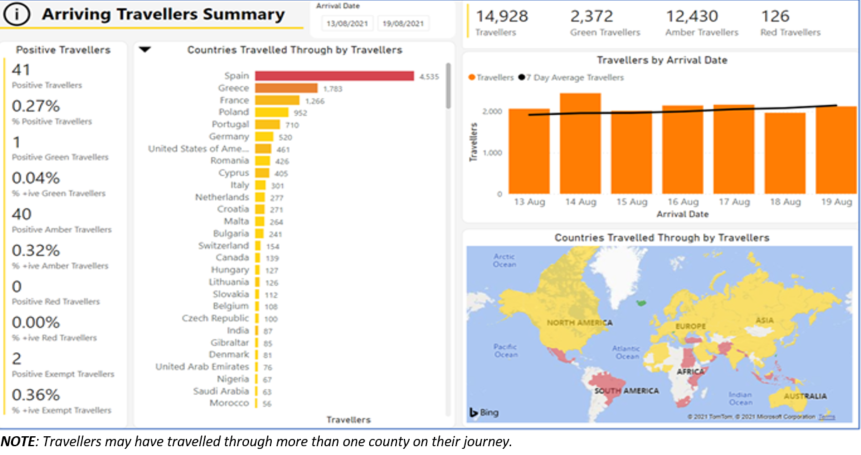 Please note that the data provided by the Home Office is derived from Passenger Locator Forms (PLF) which are self-completed by travellers. As such, data may contain inaccuracies. Due to the limitations associated with data capture and legislation, some minor discrepancies may be present in the data.