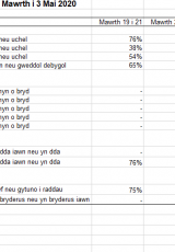 Arolwg o farn y cyhoedd ar y coronafeirws (COVID-19): 19 Mawrth i 3 Mai 2020 , math o ffeil: ODS, maint ffeil: 6 KB