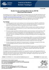 Arolwg o incwm a gwariant myfyrwyr, Medi 2007 i Awst 2008: crynodeb , Saesneg yn unig, math o ffeil: PDF, maint ffeil: 131 KB