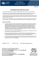 Arolwg Ymweliadau Undydd Prydain Fawr, 2012 , Saesneg yn unig, math o ffeil: PDF, maint ffeil: 3 MB