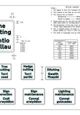 Dilynwch y rheolau yma ar gyfer eich arwyddion rhybudd, hysbysu a rheoleiddio amrywiol ar gyfer gweithfeydd ffordd.