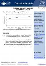 Atgyfeiriadau GIG ar gyfer apwyntiadau cyntaf fel cleifion allanol, Ebrill 2018 i Mawrth 2019 , Saesneg yn unig, math o ffeil: PDF, maint ffeil: 442 KB