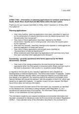 Gwybodaeth am geisiadau cynllunio ar gyfer ffermydd gwynt ar y tir yn Ne, De-orllewin, De-ddwyrain a Chanolbarth Cymru o fewn y 5 mlynedd diwethaf.