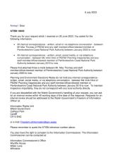 Copïau o ohebiaeth ag Awdurdod Parc Cenedlaethol Arfordir Penfro.