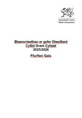 Lansiwyd y Blaenoriaethau ar gyfer Diwylliant ym mis Mai 2025 ac mae'r cynllun grant hwn ar gyfer cyllid cyfalaf rhwng £20,000 a £200,000 i fynd i'r afael â'r uchelgeisiau canlynol: