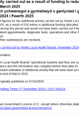 - Amcangyfrif o weithgarwch ychwanegol a gynhaliwyd o ganlyniad i gyllid i leihau amseroedd aros hir y GIG, Tachwedd 2024 i Fawrth 2025