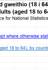 • Lefel y cymwysterau uchaf a ddelir gan oedolion o oed gweithio (18 i 64 oed), gan gwlad breswylio a gwlad enedigol, 2022