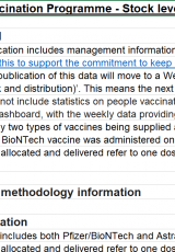 Rhaglen frechu COVID-19, lefelau stoc a dosbarthiad hyd at 8 Mawrth 2021 , Saesneg yn unig, math o ffeil: ODS, maint ffeil: 7 KB