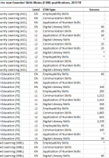 Cyfraddau llwyddiant ar gyfer cymwysterau newydd Sgiliau Hanfodol Cymru, 2017/18, Awst 2017 to Gorffennaf 2018 , Saesneg yn unig, math o ffeil: ODS, maint ffeil: 16 KB