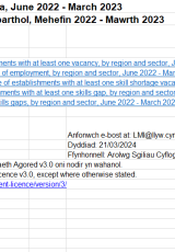 Arolwg Sgiliau Cyflogwyr, data rhanbarthol, Mehefin 2022 i Mawrth 2023 , Saesneg yn unig, math o ffeil: ODS, maint ffeil: 11 KB