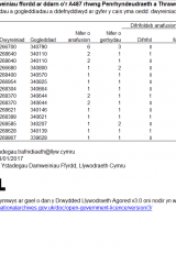 - Data am ddamweiniau ffyrdd ar ran o'r A487 rhwng Penrhyndeudraeth a Thrawsfynydd rhwng cyffyrdd yr A496 a'r A470, 2011 i 2016
