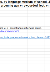 Dosbarthiadau sydd wedi’u dynodi’n rhai arbennig gan yr awdurdod lleol, yn ol cyfrwng iaith yr ysgol, Ionawr 2023 , Saesneg yn unig, math o ffeil: XLSX, maint ffeil: 18 KB