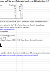 Staff ffisiotherapi, yn ôl gradd band benodedig, ar 30 Medi 2017 , Saesneg yn unig, math o ffeil: ODS, maint ffeil: 18 KB