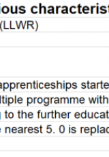 Prentisiaethau a rennir yn ol nodweddion amrywiol, Awst 2015 i Orffennaf 2020 , Saesneg yn unig, math o ffeil: ODS, maint ffeil: 27 KB