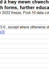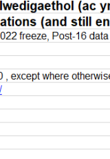 - Nifer y dysgwyr sy’n dechrau cymwysterau galwedigaethol (ac yn parhau’n gofrestredig ar ôl 8 wythnos) mewn chweched dosbarth mewn ysgol, addysg bellach, dysgu seiliedig ar waith a dysgu oedolion, yn ôl llwybr a maes pwnc sector, mis Awst 2017 i fis Gorffennaf 2022
