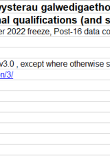- Cymwysterau galwedigaethol yr ymgymerwyd â hwy mewn chweched dosbarth ysgol, addysg bellach, dysgu seiliedig ar waith a dysgu oedolion, mis Awst 2017 i fis Gorffennaf 2022