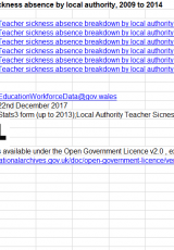 Absenoldeb athrawon oherwydd salwch, yn ôl awdurdod lleol, 2009 i 2014 , Saesneg yn unig, math o ffeil: ODS, maint ffeil: 84 KB