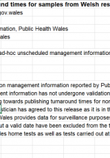 • Amseroedd gweithredu profion COVID-19 ar gyfer samplau gan breswylwyr Cymru a broseswyd mewn labordai nad ydynt yn ymwneud â'r GIG yng Nghymru (gwybodaeth reoli), hyd at 6 Gorffennaf 2020