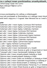 Os oes angen fersiwn fwy hygyrch o’r ddogfen hon arnoch, e-bostiwch digidol@llyw.cymru. Dywedwch wrthym pa fformat sydd ei angen. Os ydych yn defnyddio technoleg gynorthwyol, nodwch fanylion.