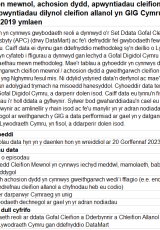 Os oes angen fersiwn fwy hygyrch o’r ddogfen hon arnoch, e-bostiwch digidol@llyw.cymru. Dywedwch wrthym pa fformat sydd ei angen. Os ydych yn defnyddio technoleg gynorthwyol, nodwch fanylion.