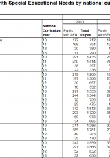 Disgyblion ag Anghenion Addysgol Arbennig yn ôl blwyddyn y cwricwlwm cenedlaethol ac awdurdod lleol, 2010 i 2019 , Saesneg yn unig, math o ffeil: ODS, maint ffeil: 29 KB