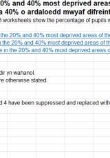 Canran y disgyblion sydd â chod post cartref yn yr 20% a 40% o ardaloedd mwyaf difreintiedig Mynegai Amddifadedd Lluosog Cymru (MALlC) 2019, ym mis Ionawr 2025 , Saesneg yn unig, math o ffeil: ODS, maint ffeil: 113 KB