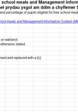 Nifer y disgyblion a chanran y disgyblion sy'n gymwys i gael prydau ysgol am ddim a chyflenwr System Gwybodaeth Rheoli (MIS) yn ôl ysgol, Ionawr 2025 , Saesneg yn unig, math o ffeil: ODS, maint ffeil: 174 KB