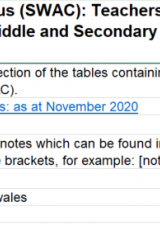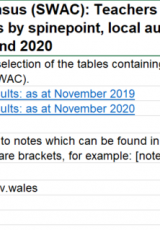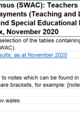 Athrawon (cyfrif pennau) yn derbyn taliadau Cyfrifoldeb Addysgu a Dysgu ac Anghenion Addysg Arbennig, Tachwedd 2020 , Saesneg yn unig, math o ffeil: ODS, maint ffeil: 8 KB