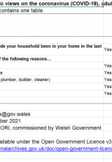Arolwg o farn y cyhoedd ar y coronafeirws (COVID-19), oedolion 16 i 74 oed, 4 Rhagfyr 2020 i 1 Tachwedd 2021 , Saesneg yn unig, math o ffeil: ODS, maint ffeil: 7 KB