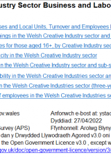- Ystadegau'r farchnad lafur a busnes y sector diwydiant creadigol Cymru, 2016 i 2021