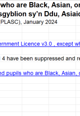 • Disgyblion yn ôl ysgol, rhyw, a disgyblion sy’n Ddu, Asiaidd neu leiafrifoedd ethnig, 2024