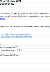 Data Rhaglen Monitro Dŵr Gwastraff COVID-19: Tachwedd 2023 i Chwefror 2024 , Saesneg yn unig, math o ffeil: ODS, maint ffeil: 37 KB