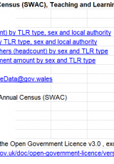 - Cyfrifiad Blynyddol o'r Gweithlu Ysgol, taliadau Cyfrifoldeb Addysgu a Dysgu yn ôl math, awdurdod lleol a rhyw, 2019