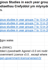 Canran o amser yn addysgu Astudiaethau Crefyddol ym mlynyddoedd ysgol 7 i 13, 2021 i 2024 , Saesneg yn unig, math o ffeil: ODS, maint ffeil: 72 KB