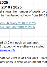 • Disgyblion mewn ysgolion a gynhelir yn ôl ysgol, 2010 i 2025
