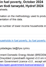 Nifer o aelwydydd incwm isel mewn tlodi tanwydd, Hydref 2024 , Saesneg yn unig, math o ffeil: ODS, maint ffeil: 6 KB