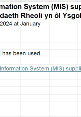 Nifer y Disgyblion a Meddalwedd Gwybodaeth Rheoli yn ôl Ysgol, Ionawr 2024 , Saesneg yn unig, math o ffeil: ODS, maint ffeil: 81 KB