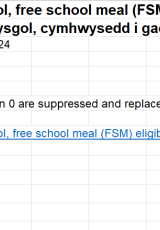 Nifer y disgyblion fesul grŵp blwyddyn, rhyw ac ysgol, cymhwysedd i gael prydau ysgol am ddim fesul ysgol, Ionawr 2024 , Saesneg yn unig, math o ffeil: ODS, maint ffeil: 255 KB