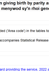 Nifer y menywod sy'n rhoi genedigaeth yn ôl esgoredd a bwrdd iechyd sy'n darparu'r gwasanaeth, 2022 a 2023 , Saesneg yn unig, math o ffeil: ODS, maint ffeil: 43 KB