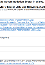 Ystadegau busnes ar gyfer y sector llety yng Nghymru, 2023 , Saesneg yn unig, math o ffeil: ODS, maint ffeil: 7 KB