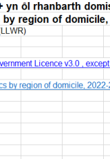 Ystadegau Twf Swyddi Cymru+ yn ôl rhanbarth domisil, blwyddyn ariannol 2022-23 , Saesneg yn unig, math o ffeil: ODS, maint ffeil: 5 KB