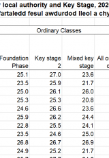 - Maint dosbarth ar gyfartaledd fesul awdurdod lleol a chyfnod allweddol, 2020