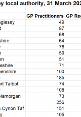 Staff practis meddyg teulu yn ôl awdurdod lleol, 31 Mawrth 2020 , Saesneg yn unig, math o ffeil: ODS, maint ffeil: 16 KB