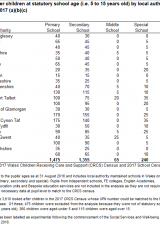 Plant o oedran ysgol statudol sy'n derbyn gofal yn ôl awdurdod lleol a math o ysgol, ar 31 Mawrth 2017 , Saesneg yn unig, math o ffeil: ODS, maint ffeil: 17 KB