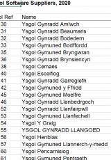 Cyflenwyr meddalwedd yn ôl ysgol, 2020 , Saesneg yn unig, math o ffeil: ODS, maint ffeil: 40 KB