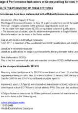 - Dangosyddion perfformiad Cyfnod Allweddol 4 ar gyfer Ysgol Croesyceiliog, Medi 1995 i Awst 2017