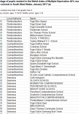 Disgyblion ysgol uwchradd a chanol sy'n byw yn y 40% o ardaloedd mwyaf difreintiedig de-orllewin Cymru, Ionawr 2017 , Saesneg yn unig, math o ffeil: ODS, maint ffeil: 7 KB
